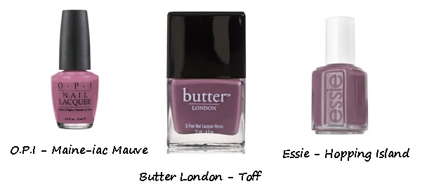 Mauve - The mix between purple, pink and grey is trending big this season. It's a very lovely colour, that suits almost everyone and has a very elegant, timeless flair to it. It's kind of vintage but still very young. I personally love Butter London's Toff, which is in my opinion the perfect shade of mauve.